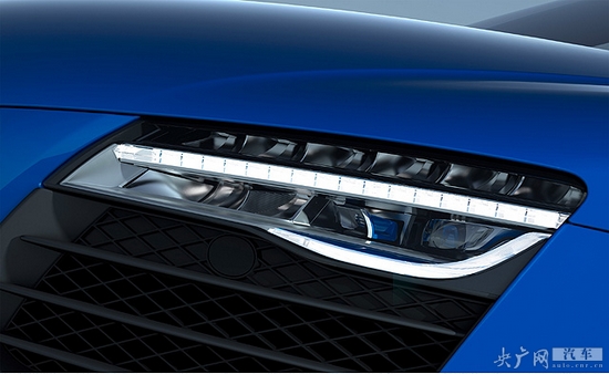 奧迪R8 LMX被形容為“世界上第一部配備激光遠光燈的量產(chǎn)車”,其激光頭燈內(nèi)部帶有四個高能量的鐳射二極管,可以投射出色溫在5,500開爾文的白光,該光束會在60公里/小時的情況下開啟,為“車輛的可視性和安全性”帶來極大的加強。