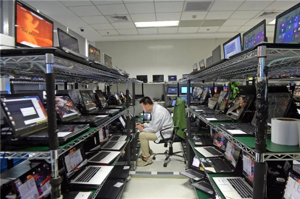 在聯(lián)寶(合肥)電子科技有限公司,工作人員正在對筆記本電腦進(jìn)行滿負(fù)荷壓力測試。記者張大崗攝