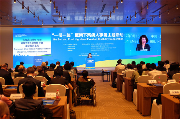 9月14日上午,“一帶一路”框架下殘疾人事務(wù)主題活動在北京國家會議中心正式開幕。來自世界衛(wèi)生組織、國際電信聯(lián)盟、康復(fù)國際、國際殘疾人聯(lián)盟、紅十字國際委員會等國際組織和“一帶一路”沿線30余個國家的150余名外方代表以及來自國務(wù)院殘疾人工作委員會成員單位、全國殘聯(lián)系統(tǒng)和國內(nèi)外輔助器具工商企業(yè)的代表共400余人出席開幕式。