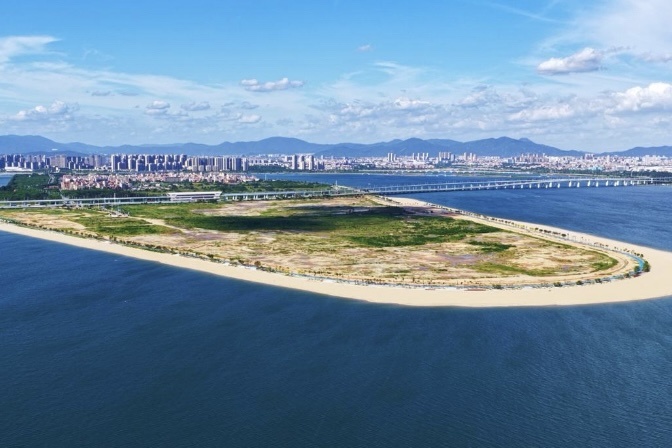 碧海藍(lán)天間,鷺鳥翩躚飛;銀灘步道旁,荒灘展新顏。在同安灣環(huán)東海域的碧波中,面積僅3.5平方公里的丙洲島宛若一枚被潮汐反復(fù)摩挲的生態(tài)明珠,靜臥其間。然而早年間,這里還是一片雜亂的灘涂地。水產(chǎn)養(yǎng)殖和海砂開采無序,致使岸線破碎,水質(zhì)污染,不僅嚴(yán)重影響了周邊居民的生活質(zhì)量,也影響了長毛對蝦、黃鰭鯛、白海豚等野生海洋生物的生存。