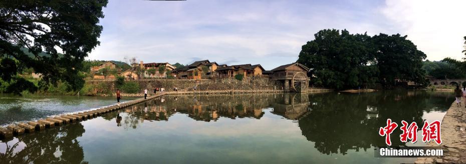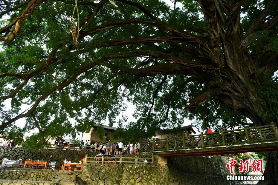 •   8月8日,福建南靖古村落“云水謠”暑期迎客來。王東明 攝   云水謠古鎮(zhèn)是個歷史悠久的古老村落,村中幽長古道、百年老榕、神奇土樓,還有那靈山碧水,無不給人以超然的感覺。溪岸邊,由13棵百年、千年老榕組成的榕樹群蔚為壯觀;古道旁,有一排兩層老式磚木結(jié)構(gòu)房屋,那就是長教已有數(shù)百年歷史的老街市,這些老商鋪大多還保留著木板代墻的特點(diǎn)。