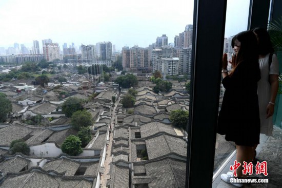 7月8日,從高處鳥(niǎo)瞰有“中國(guó)明清建筑博物館”之稱(chēng)的福州三坊七巷,蔚為壯觀。位于福州中心城區(qū)的三坊七巷擁有38公頃的完整保護(hù)范圍,為國(guó)內(nèi)現(xiàn)存規(guī)模較大、保護(hù)較為完整的歷史文化街區(qū),是全國(guó)為數(shù)不多的古建筑遺存之一,有“中國(guó)城市里坊制度活化石”和“中國(guó)明清建筑博物館”的美稱(chēng)。