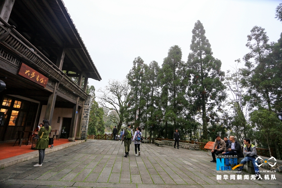 游客在鼓嶺大夢書屋前休憩(11月6日攝)。新華網(wǎng) 肖和勇 攝