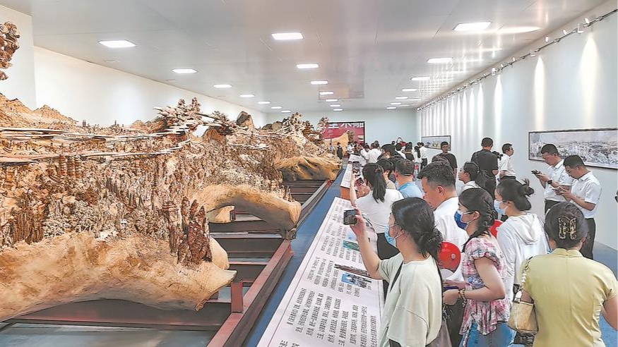 8日上午,莆田市美術(shù)館內(nèi)木香氤氳、人頭攢動,大型木雕《京杭大運河》江南卷正在這里展出。