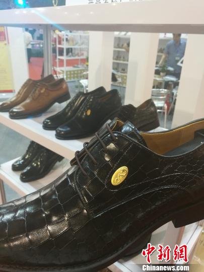 中新網(wǎng)消息: 2017中國加工貿(mào)易產(chǎn)品博覽會(簡稱“加博會”)20在廣東東莞開幕,不少參展企業(yè)選擇在展會現(xiàn)場發(fā)布企業(yè)新品,在展會現(xiàn)場,國內(nèi)首款用純金打造logo的鞋子亮相展會,在展會上吸睛不少。