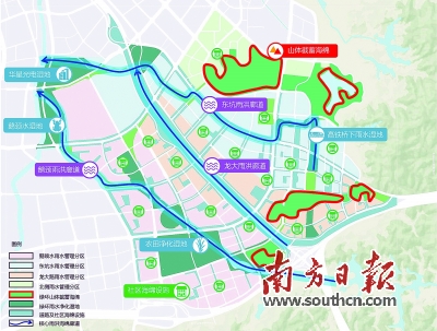 深圳光明新區(qū)鳳凰城大型海綿設(shè)施示意圖