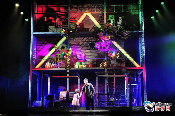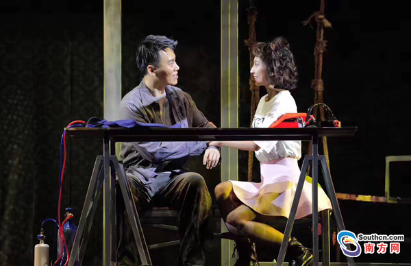在這部音樂劇中,除了內(nèi)容上的深沉表達(dá),在舞臺技術(shù)上也進(jìn)行了大膽的嘗試和突破。松雷音樂劇團(tuán)先期在北京進(jìn)行了五周左右的工坊版排練,4月8號出發(fā)到東莞進(jìn)行合成排練,總共用了不到12天時間。松雷音樂劇團(tuán)副團(tuán)長許中堅表示,這是該劇團(tuán)有史以來排練時間最短、合成時間最短,也是遇到問題最多的一次。
