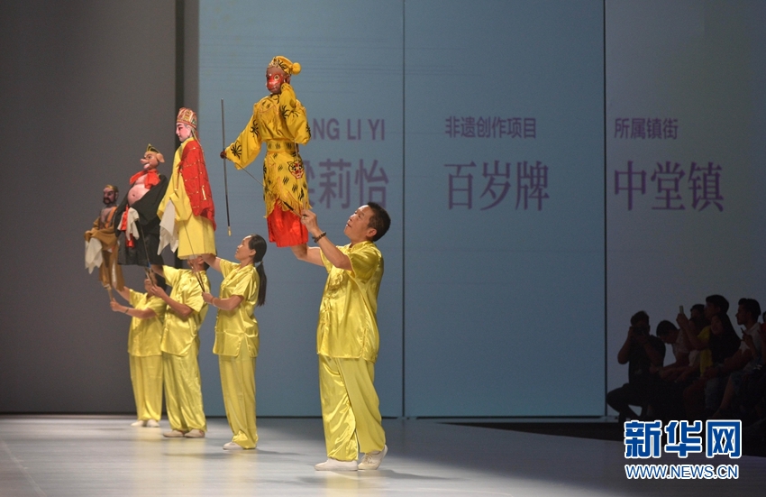 26、8月23日,東莞非遺原創(chuàng)服裝設(shè)計項(xiàng)目作品發(fā)布會現(xiàn)場的木偶表演。新華網(wǎng)發(fā)(許建梅攝)