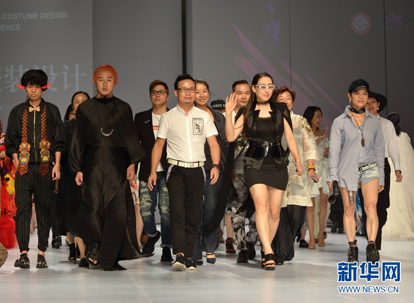 8月23日,設(shè)計師在東莞非遺原創(chuàng)服裝設(shè)計項(xiàng)目作品展示之后集體亮相。新華網(wǎng)發(fā)(許建梅攝)