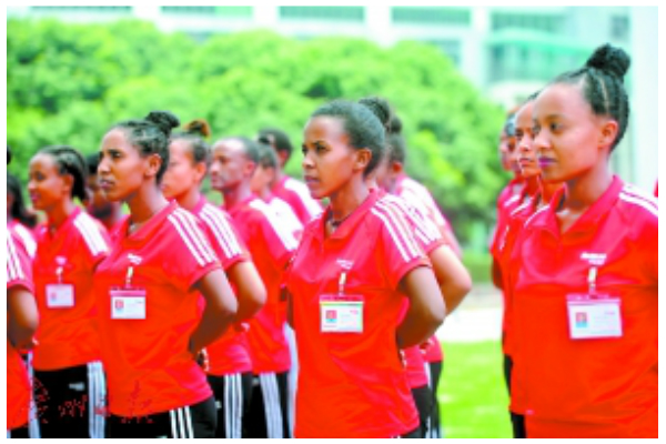昨日,在東莞華堅集團總部,50多名埃塞俄比亞工人現(xiàn)場合唱了《團結就是力量》。據(jù)華堅集團有關人士介紹,今年大約有200名埃塞俄比亞工廠的當?shù)馗刹繂T工來華堅集團總部進行培訓。這50多人正是第三批的培訓干部。