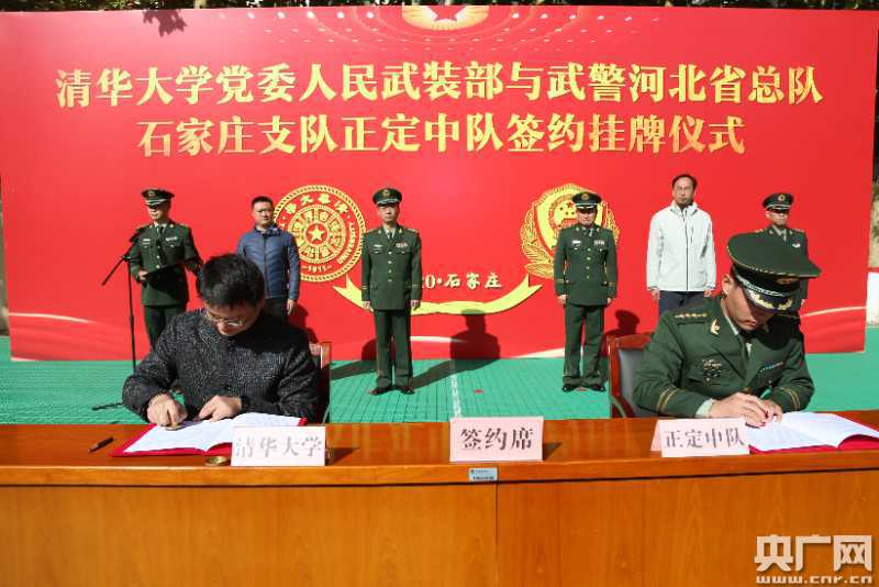 清華大學(xué)黨委武裝部和正定中隊(duì)簽約現(xiàn)場(央廣網(wǎng)發(fā) 武警正定中隊(duì)供圖)