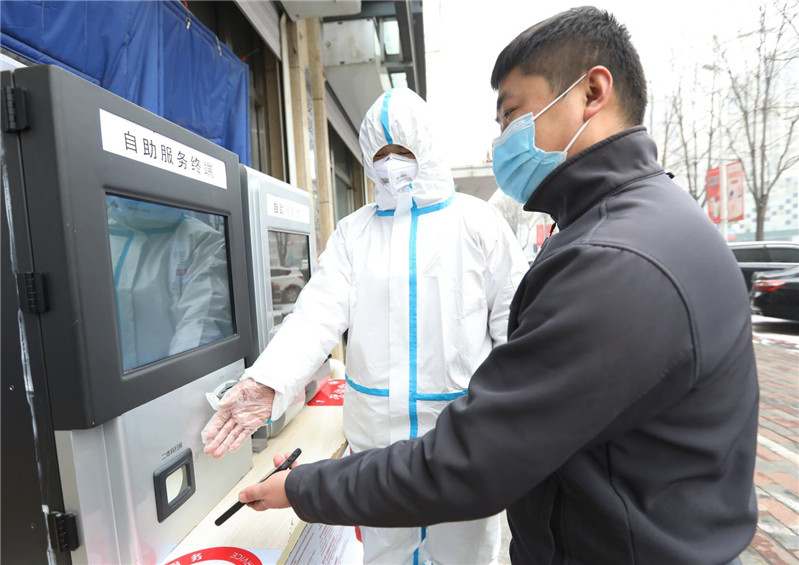 在固安縣新昌街百川燃?xì)鉅I(yíng)業(yè)點(diǎn),社區(qū)代辦員通過自助終端設(shè)備為群眾代買天然氣(央廣網(wǎng)發(fā) 門叢碩 攝)