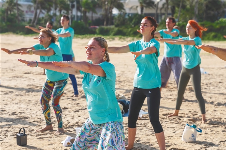 30余名外國學(xué)員海邊學(xué)太極拳