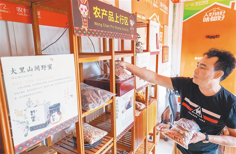 近日,在陵水黎族自治縣本號鎮(zhèn)小妹村農(nóng)村淘寶店中,工作人員正在整理特色農(nóng)產(chǎn)品,準(zhǔn)備通過物流發(fā)往各地。