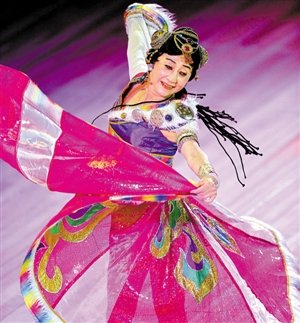 74歲的舞蹈大師陳愛(ài)蓮表演藏族舞蹈《天路》。(新華社記者 陳曉偉 攝)