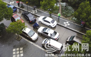 央廣網(wǎng)河南分網(wǎng)消息 據(jù)杭州網(wǎng)報(bào)道:昨天下午3點(diǎn)10分,我們到崇文實(shí)驗(yàn)學(xué)校門口看了看。學(xué)校在近江小區(qū)內(nèi),小區(qū)道路比較窄。學(xué)校門口的路大約七八米寬,有一側(cè)是固定停車位,一旦有車在學(xué)校門口停留,就會(huì)發(fā)生擁堵。
