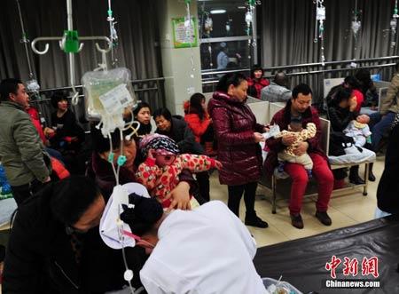 2月24日,河北省兒童醫(yī)院大廳內(nèi)人頭攢動(dòng),前來(lái)就診的兒童絡(luò)繹不絕,走廊里都擠滿(mǎn)了等待就診和輸液的兒童。該省兒童醫(yī)院急診科主任張中馥表示:“開(kāi)春之后天氣好轉(zhuǎn),呼吸道疾病本因會(huì)下降,但最近幾天受霧霾影響,呼吸道患兒明顯增多,以肺炎,上呼吸道炎癥為主!敝行律绨l(fā)翟羽佳 攝