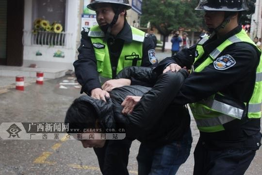 上午10時,防暴演練開始,由公安干警扮演的兩名“歹徒”試圖沖入校門,學校門衛(wèi)及護衛(wèi)隊員阻攔并立即報警。接到警報后,學校立刻啟動防恐防暴緊急預(yù)案,各班主任立即組織學生迅速回到教室并關(guān)好門窗。由學校老師組成的護校隊收到防暴指令,護校隊運用防暴工具將“歹徒”引至校園死角處,并努力制服“歹徒”。聞訊而來的巡警,把企圖行兇的“歹徒”制服,扭送到派出所,全校解除險情。