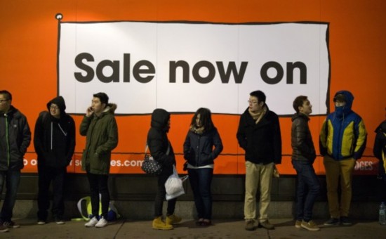 當(dāng)?shù)貢r(shí)間12月26日,英國倫敦,消費(fèi)者沖進(jìn)哈洛德百貨商場,搶購打折商品。