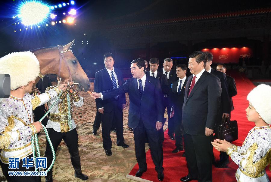 習(xí)近平與土庫(kù)曼斯坦總統(tǒng)別爾德穆哈梅多夫共同出席世界汗血馬協(xié)會(huì)特別大會(huì)暨中國(guó)馬文化節(jié)活動(dòng)
