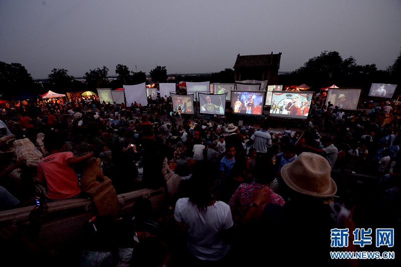 央廣網(wǎng)河南分網(wǎng)消息 據(jù)新華網(wǎng)河南頻道報道:在河南省?h浮丘山廟會上,數(shù)十場電影在碧霞宮廣場同時上映成為一大奇觀。過去,人們是在廟會上搭臺唱戲,20世紀80年代后改成了放電影,起初播放的是電影膠片,現(xiàn)在變成數(shù)字電影。數(shù)以萬計趕廟會的群眾每年這個時候一早就來到這里,搶占位置,席地而坐,享受電影大餐。(新華社記者 趙鵬 攝)