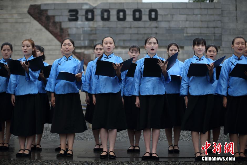 9月18日,侵華日軍南京大屠殺遇難同胞紀(jì)念館悼念廣場上,南京曉莊學(xué)院新聞傳播學(xué)院的34名大學(xué)生身著上世紀(jì)一二十年代的學(xué)生裝,在“勿忘九一八”南京青少年詩歌朗誦會(huì)暨“勿忘國恥·圓夢中華”朗誦比賽啟動(dòng)儀式上朗誦《松花江上》、《南京!南京!》等詩歌。當(dāng)日是“九一八事變”83周年,中國各地紛紛舉辦各種形式的紀(jì)念活動(dòng)。中新社發(fā) 泱波 攝