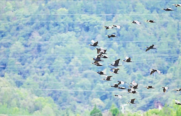 金秋時節(jié),神農(nóng)架林區(qū)迎來大規(guī)模候鳥南遷。每年9月至10月,來自北方的雁鴨類、鸻鷸類及多種猛禽沿東亞—澳大利亞遷徙路線南下。神農(nóng)架憑借豐富的濕地資源、茂密森林與充足食物來源,成為這些長途候鳥重要的“中轉(zhuǎn)站”與“補給點”。圖為10月18日,候鳥飛過松柏鎮(zhèn)與陽日鎮(zhèn)交界的南河流域。(湖北日報全媒記者 萬雷萌 通訊員 魏家鋒 喻杰 李嬌嬌 姜林 攝)