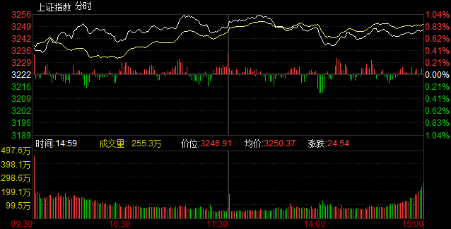 央廣網(wǎng)財(cái)經(jīng)2月17日消息,據(jù)經(jīng)濟(jì)之聲《交易實(shí)況》報(bào)道,兩市開(kāi)盤(pán)小幅高開(kāi),隨后震蕩上升,滬指七連陽(yáng)收官,滬指報(bào)3246.91點(diǎn),上漲24.54點(diǎn),漲幅0.76%,成交2633億元;深成指報(bào)11718.5點(diǎn),上漲123.31點(diǎn),漲幅1.06%,成交2494億元;創(chuàng)業(yè)板指報(bào)1894.31點(diǎn),下跌2.32點(diǎn),跌幅0.12%,成交549.3億元。