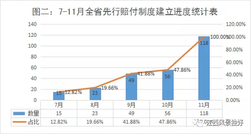圖二:7-11月全省先行賠付制度建立進(jìn)度統(tǒng)計(jì)表