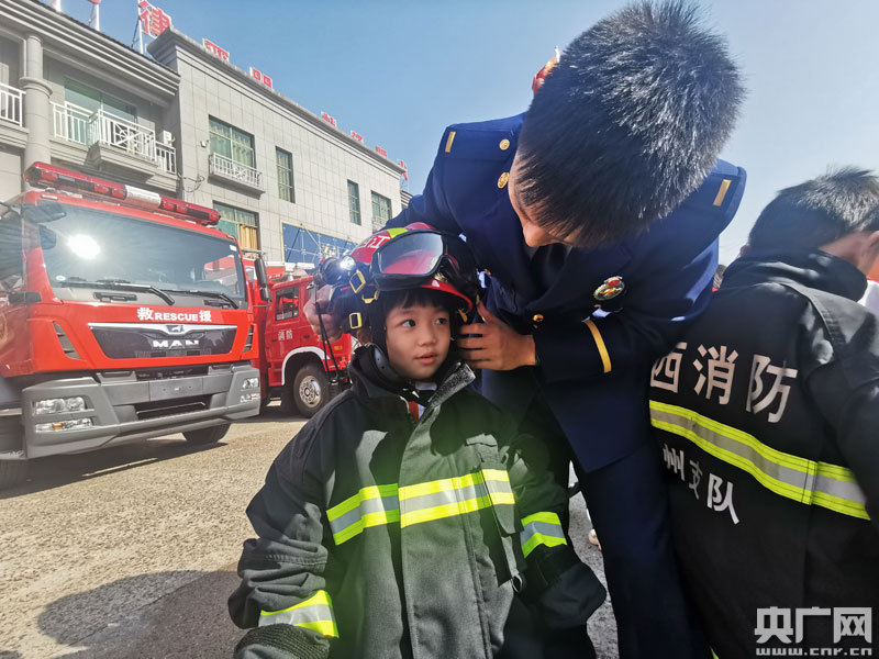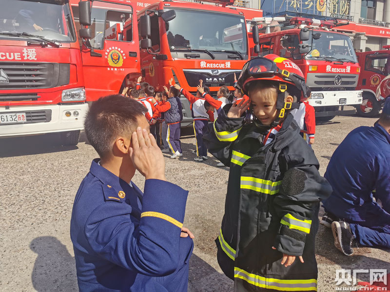 穿上消防服,長(zhǎng)大我也要當(dāng)消防員(央廣網(wǎng)發(fā) 通訊員供圖)
