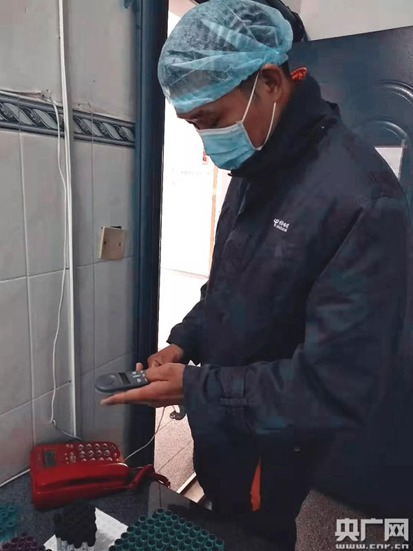 圖為正在隔離區(qū)安裝網(wǎng)絡(luò)和電話的共產(chǎn)黨員鄭國恩