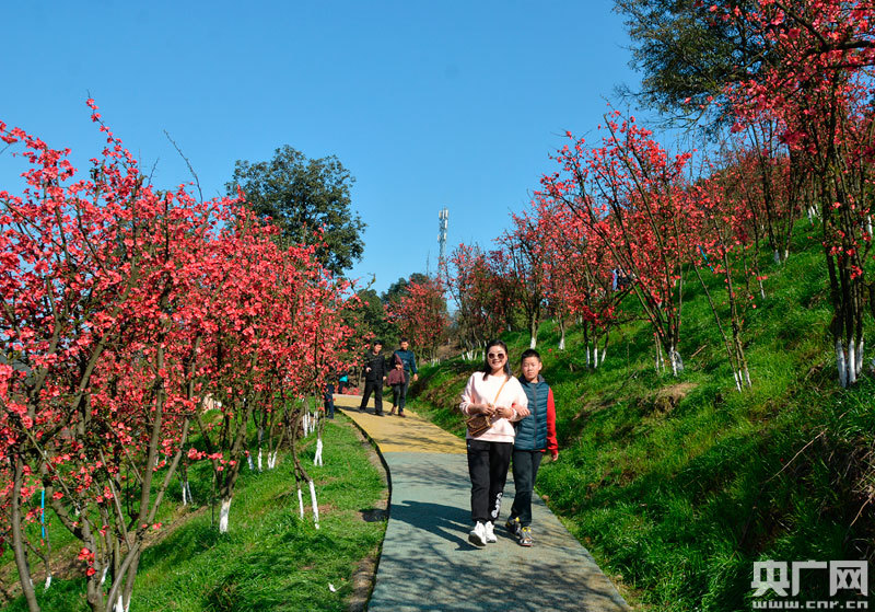 央廣網(wǎng)萍鄉(xiāng)3月25日消息(記者王一凡 通訊員劉偉南)春日艷陽花香濃,江西省萍鄉(xiāng)市安源略下村“陽光花!比顺比缈棧慰蛡兗娂娫谑㈤_的海棠、碧桃、映山紅花從中賞花、拍照。