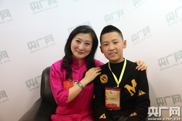全國(guó)人大代表、國(guó)家一級(jí)演員陳澄(左)接受央廣網(wǎng)小記者劉新辰(右)采訪。