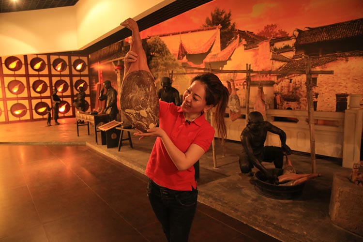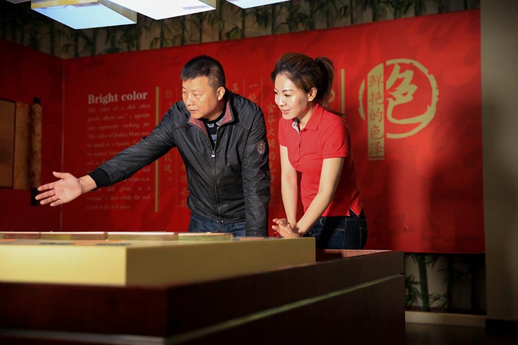 在火腿博覽館取景的過程中,主持人對(duì)火腿制作工藝和火腿的造型產(chǎn)生了濃厚的興趣:修胚、上鹽、洗曬、整形、發(fā)酵、聞香等工序不但精細(xì)且充滿了儀式感。陳師傅向她介紹:傳統(tǒng)火腿制作工藝工序多達(dá)36道,金字火腿遵循古法工藝制作,保證金字出產(chǎn)的每一條腿都是“復(fù)古”的“美味腿“。為什么說是美味腿?在金字火腿的中國火腿博覽館內(nèi),欄目組對(duì)著一桌的仿真火腿菜肴大呼驚嘆,忍不住都想拿起筷子吃上兩塊。
