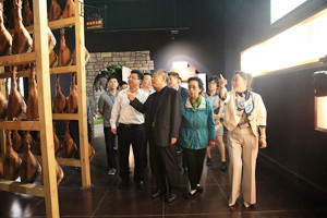 6月28日下午,省人大常委會副主任馮明一行在金華市人大常委會副主任陳志身等的陪同下,參觀考察了建于金字火腿內(nèi)的中國火腿博覽館和世界火腿博覽館,了解金華火腿的行業(yè)發(fā)展現(xiàn)狀。 金字火腿總經(jīng)理吳月肖向馮明一行介紹了金華火腿的歷史文化、傳統(tǒng)制作工藝、營養(yǎng)價值和儲存食用方法。馮明指出,金華火腿雖然是一個傳統(tǒng)行業(yè),但也要跟上形勢,通過各種渠道進行推廣傳播,她特別強調(diào)了互聯(lián)網(wǎng)營銷在當代企業(yè)發(fā)展中的作用,十分關心企業(yè)在這一方面的發(fā)展……