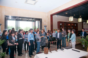 “Jinhua ham is so magical”,”This is delicious”“Good,Good”······5月9日上午,在 由金字興建的國(guó)內(nèi)唯一的中國(guó)火腿博覽館及世界火腿博覽館場(chǎng)館內(nèi)異常熱鬧,一聲聲包含著好奇、驚嘆、稱(chēng)贊的英文不絕于耳。原來(lái),是來(lái)自英國(guó)、湯加、毛里求斯等20國(guó)駐華使節(jié)50余人訪問(wèn)團(tuán)在參觀考察……