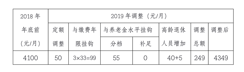 據(jù)介紹,2019年繼續(xù)實(shí)行與繳費(fèi)年限掛鉤普遍增加基本養(yǎng)老金的辦法。其中,繳費(fèi)年限滿10年及以上的退休人員,繳費(fèi)年限每滿1年,每月增加3元;對(duì)于不足整年的月數(shù),每月增加0.25元;繳費(fèi)年限不滿10年的(不含建設(shè)征地農(nóng)轉(zhuǎn)工退休人員),每人每月增加30元;繳費(fèi)年限不滿15年的建設(shè)征地農(nóng)轉(zhuǎn)工退休人員,每人每月增加45元。