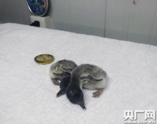 企鵝寶寶鉆到父母的懷抱中   據(jù)圣亞企鵝馴養(yǎng)師介紹,每對(duì)企鵝夫婦在繁育季都會(huì)生產(chǎn)兩枚企鵝蛋,然而兩枚企鵝蛋都受精成功并且孵化出來(lái)且存活下來(lái)的機(jī)率,無(wú)論是在野外環(huán)境還是人工環(huán)境都極低,這對(duì)雙胞胎的降生給大家?guī)?lái)了極大的驚喜。剛出生的小家伙不能走路、不能站立、也不能自己找吃的,甚至看不見只能聽見爸爸媽媽微弱的叫聲,它們靠這細(xì)微的叫聲來(lái)辨別父母并投入它們的懷抱。由于小企鵝身上的絨毛很脆弱,不能給身體保溫,處于0°的低溫條件下極有可能面臨生命危險(xiǎn)。   馴養(yǎng)師在雙胞胎降生的24小時(shí)內(nèi),日夜不休輪班悉心呵護(hù),時(shí)刻檢查它們的體溫和生命體征,直到雙胞胎的狀態(tài)穩(wěn)定下來(lái)。目前,雙胞胎企鵝寶寶已經(jīng)重新回到企鵝爸爸媽媽身邊,回去后就一直將頭縮進(jìn)爸爸媽媽的肚子下面撒嬌取暖,非?蓯。預(yù)計(jì)30天以后小企鵝身上的絨毛就會(huì)變得豐滿,到那時(shí)就可以獨(dú)立的生存在外界環(huán)境中了。