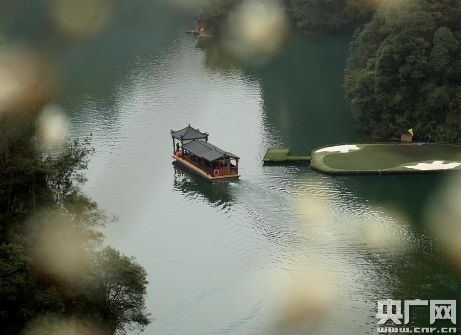 立春后,湖南張家界寶峰湖風景區(qū)櫻花、映山紅次第開放,爭奇斗艷,與碧綠的湖水交相輝映,船行其間宛如一幅春色畫卷 -