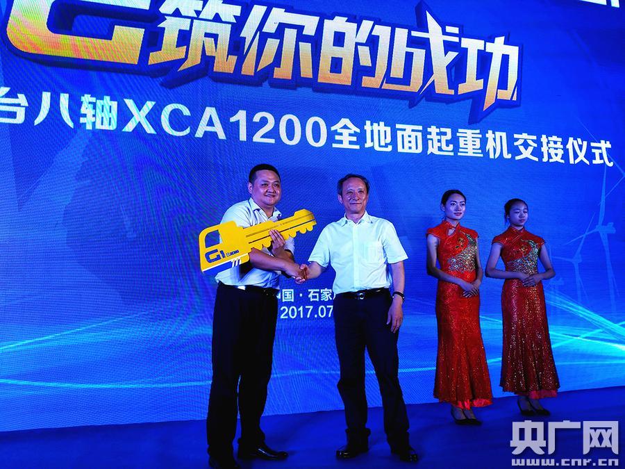 徐工集團董事長王民將XCA1200金鑰匙交付用戶手中 央廣網(wǎng)南京7月12日消息(記者楊守華 通訊員孫冬杰)來自全國風(fēng)電吊裝領(lǐng)域的數(shù)百位企業(yè)家近日齊聚河北石家莊,共同見證了全球首臺八軸千噸級全地面起重機交接儀式。徐工“G筑你的成功”全國風(fēng)電領(lǐng)域大客戶會議、徐工G一代區(qū)域新品推廣會、“G能大咖”徐工起重機械事業(yè)部吊裝專家年度技能挑戰(zhàn)賽(石家莊站)也同期舉行。 此次交付的XCA1200全地面起重機,是G技術(shù)平臺上打造的巔峰之作。從設(shè)計之初,XCA1200就汲取大量千噸級風(fēng)電施工現(xiàn)狀數(shù)據(jù)和發(fā)展需求趨勢,擁有全閉式液壓系統(tǒng)、智能臂架、新型單缸插銷、G一代外觀造型、人機交互系統(tǒng)等12項“G一代”原創(chuàng)技術(shù)。 八節(jié)單缸插銷伸縮臂,由超高強度鋼材制造而成的吊臂,具備安裝約2.5兆瓦風(fēng)電的能力。同時,XCA1200可通過模塊組合變化成通用機型與風(fēng)電機型,用戶可選裝固定副臂、塔臂。配合徐工成熟的超起組合臂技術(shù),可有效減少起重機臂變形,使整機起重性能和安全性能得到大幅度提升。 此外,XCA1200全地面起重機的顛覆性設(shè)計在于底盤的優(yōu)化,八橋底盤可實現(xiàn)全輪轉(zhuǎn)向。底盤技術(shù)中的關(guān)鍵是油氣懸架系統(tǒng)和多橋轉(zhuǎn)向系統(tǒng)設(shè)計,這兩項技術(shù)都是全地面起重機的獨有技術(shù)。 徐工集團董事長王民說,“這是讓世界老牌起重裝備制造商真正感受到的強大競爭力量,也是支撐徐工成為全球超級起重裝備領(lǐng)域‘塔尖上舞蹈’的新的引領(lǐng)者! 此次交付的這臺全球首臺八軸XCA1200全地面起重機,是中國超級起重裝備創(chuàng)新攻關(guān)又一個里程碑,在技術(shù)上是真正的全球獨創(chuàng),有完全自主擁有的12項核心專利,能夠適應(yīng)最苛刻風(fēng)電施工環(huán)境的挑戰(zhàn)。 “新能源吊裝生態(tài)云平臺”眾籌計劃同時在交接儀式上啟動,據(jù)了解,該計劃將對中小企業(yè)會有很大幫助。企業(yè)用戶可以通過APP軟件、微信解決日常出現(xiàn)的技術(shù)問題、運營問題(如收費問題、轉(zhuǎn)場費用等),及各地區(qū)政策方針建議提醒等。
