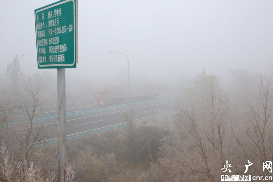 新疆精河縣遭遇罕見(jiàn)持續(xù)大霧侵襲(央廣網(wǎng)發(fā) 田向東攝)