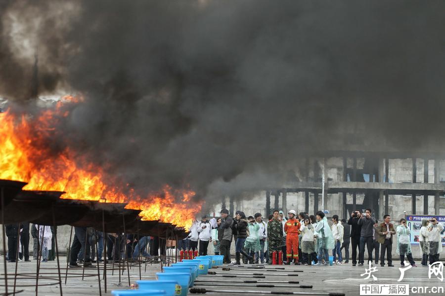 中越聯(lián)手焚燒毒品1000公斤(央廣網(wǎng)記者 張壘 攝)