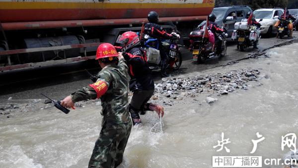 截止12日12時(shí)許,經(jīng)過武警交通二支隊(duì)六中隊(duì)官兵晝夜艱苦鏖戰(zhàn),搶修便道200余米,成功打通受阻路段,保證了210多臺受阻車輛、1500余名被困人員安全順利通過。
