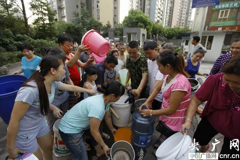 小區(qū)居民趕來接水(央廣網發(fā) 田世輝 攝)