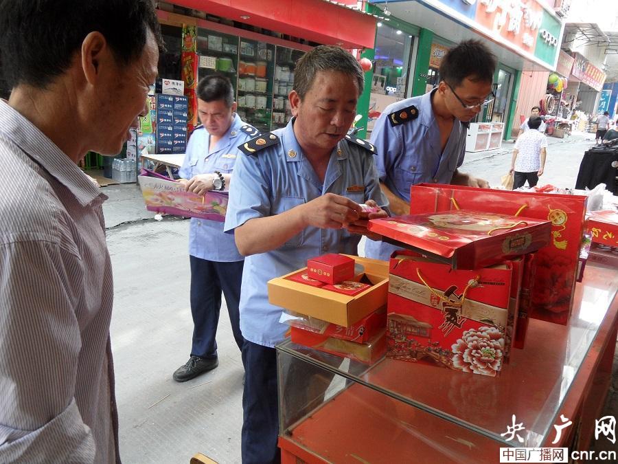 執(zhí)法人員當場查扣“三無”月餅(鄭聰明 攝)(央廣網(wǎng)記者 陳庚 攝)