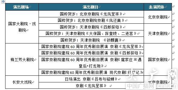 2015年春節(jié)期間,全市戲曲舞臺(tái)共推出63臺(tái)、85場(chǎng)各類(lèi)傳統(tǒng)戲曲,內(nèi)容涵蓋了京劇以及評(píng)劇、昆曲、河北梆子等地方戲曲。國(guó)家大劇院、梅蘭芳大劇院、長(zhǎng)安大戲院、中國(guó)評(píng)劇大劇院等北京市各大演出場(chǎng)館均在此期間推出了新春系列戲曲演出,各地專(zhuān)業(yè)戲曲表演院團(tuán)紛紛登臺(tái)演出。