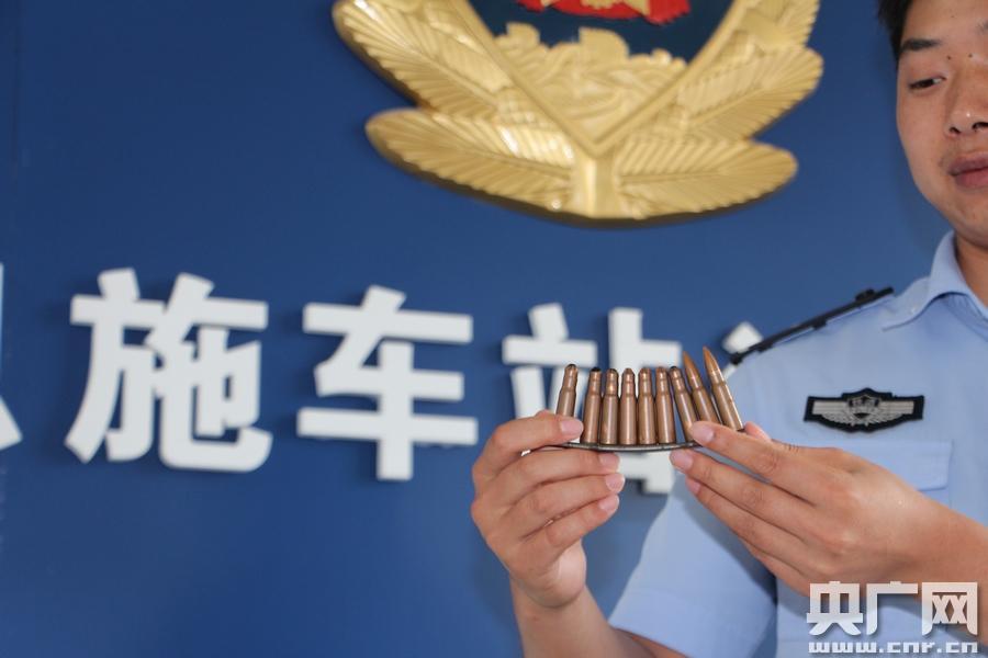 湖北恩施一男子攜帶9顆步槍子彈乘火車被查(央廣網(wǎng)記者 張毛清 攝)