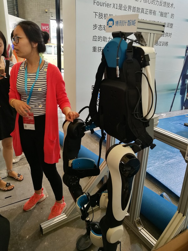 在展會(huì)現(xiàn)場,一臺(tái)可穿戴機(jī)器人吸引了眾多記者的目光。據(jù)介紹,這臺(tái)可穿戴機(jī)器人學(xué)名外骨骼機(jī)器人,又稱動(dòng)力外骨骼系統(tǒng),是將機(jī)電一體化、生物力學(xué)、人體傳感網(wǎng)絡(luò)、步態(tài)分析等多領(lǐng)域科技融合而成的產(chǎn)物,可以讓下肢癱瘓者也能上下樓梯。它主要針對下半身癱瘓的患者,幫助他們實(shí)現(xiàn)坐、站、行走、上下樓梯等基本功能。