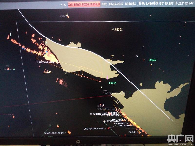 洋山港海事局VTS已設(shè)置四期碼頭的專項監(jiān)控窗口(央廣網(wǎng)發(fā) 徐雷雷攝)