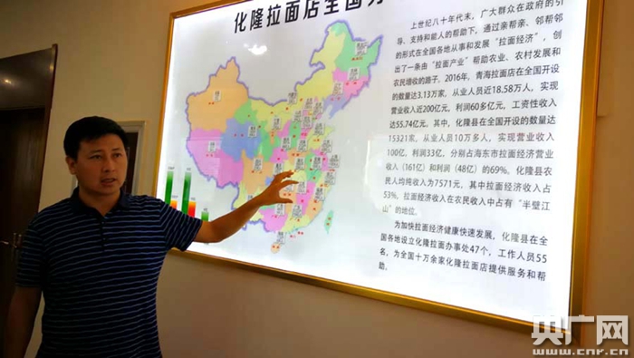 在海東市化隆回族自治縣,各項扶貧工程中有一項很特別:拉面扶貧工程。目前,化隆人在全國各地開辦了1.5多萬家拉面館,從業(yè)人員10萬多人,占全縣人口的1/3,拉面經(jīng)濟收入占全縣農(nóng)民人均收入一半以上,勞務輸出是化隆縣城鄉(xiāng)富余勞動力增收脫貧的重要渠道。